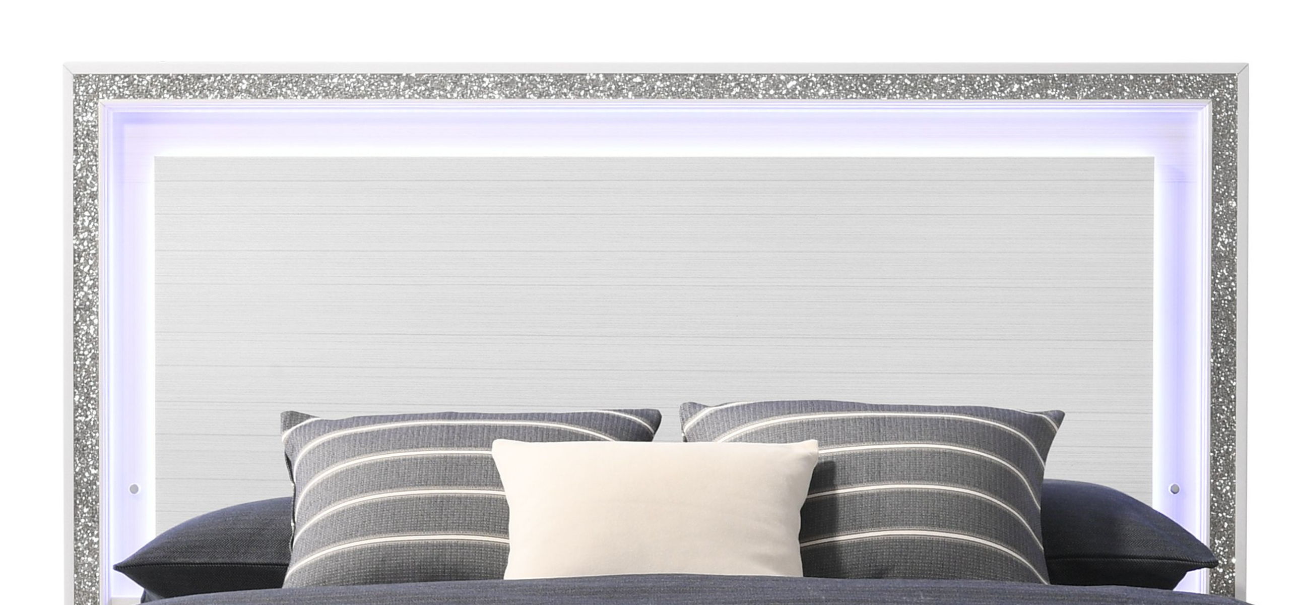 - Elegant Design: Features an integrated LED-lit panel headboard with shimmering silver accents, adding a luxurious and modern touch to your bedroom.